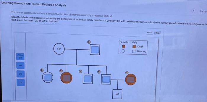 To study extra about these symbolic household bushes assessment the corresponding lesson titled Pedigree Evaluation in Human Genetics. Half A The human pedigree proven right here is for an inherited type of deatness brought on by a recessive allele d Drag the labels to the pedigree to identification the genotypes of particular person relations. Pedigree charts are diagrams that present the phenotypes andor genotypes for a selected organism and its ancestors.
